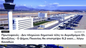 69 / 100 Powered by Rank Math SEO SEO Score Ελ. Βενιζέλος: Κρατικοποίηση εδώ και τώρα !! …………………………… Πρωτοφανές – Δεν πληρώνει δημοτικά τέλη το Αεροδρόμιο Ελ. Βενιζέλος – Ο Δήμος Παιανίας θα επιστρέψει 9,2 εκατ…. λόγω Καναδών Τα Δημοτικά Τέλη, η βασική πηγή εσόδων για την Τοπική Αυτοδιοίκηση έγιναν εφιάλτης για τους Δήμους που … Συνεχίστε να διαβάζετε το Ελ. Βενιζέλος: Κρατικοποίηση εδώ και τώρα !!.